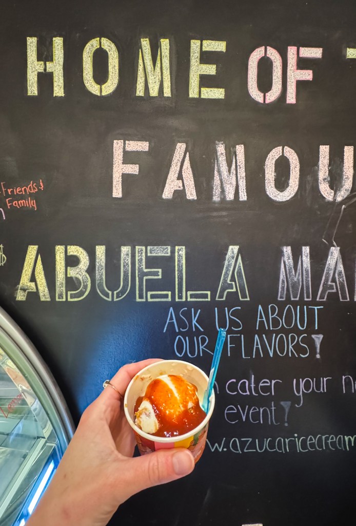 We ended the night with some of the most delicious ice cream I’ve ever had at Azucar Ice Cream Company. We got to try the Abuela Maria flavor and I highly recommend trying this flavor if you ever go to Azucar! It has a vanilla ice cream base with guava chunks and marmalade, cream cheese, and Maria cookies. I love an ice cream with crunchy cookies and it was just “simply divine” as my grandmother loves to say!